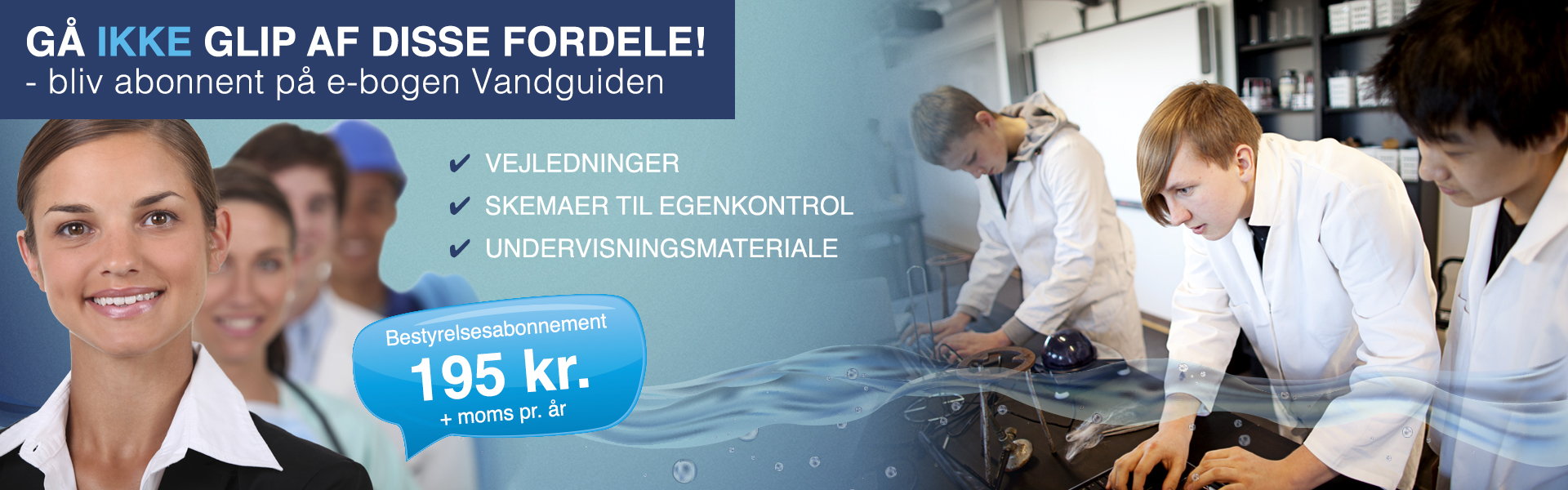 Der er flere annonceringsmuligheder på www.vandguiden.dk – her vil prisen for 1 års optagelse være: