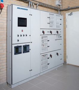 Forsynings- og styretavle (SRO) med integreret styring til udpumpningsanlæg for hhv. høj- og lavtrykszone
