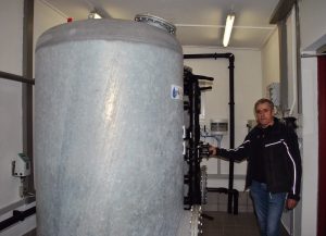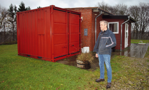 Balle Vandværks formand Jørgen Brøgger ved filteranlægget.