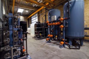 Eksempel på blødgøringsinstallation hos Arlas mejeri i Brabrand. I forgrunden ses desuden membranfiltrering, ligeledes produceret og leveret af SILHORKO.