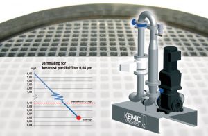 Med det kompakte keramiske filter undgår vandværkerne de store tilbygninger, da filtret, som billedet viser, kun fylder minimalt i forhold til et traditionelt sandfilter. Selve filtret er med sin kompakte udformning fremtidens supplement til traditionel vandrensning i Danmark.Det kompakte keramiske partikelfilter anvender den nyeste teknologi i kombination med traditionel vandbehandling.