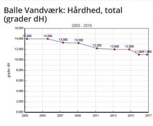 0-4 = Meget blødt / 4-8 = Blødt / 8-12 = Middel hårdt / 12-18 = Temmelig hårdt / 18-30 = Hårdt / over 30 = Meget hårdt. Der er ikke stillet kvalitetskrav til hårdheden, men den bør ligge mellem 5-30°dH.